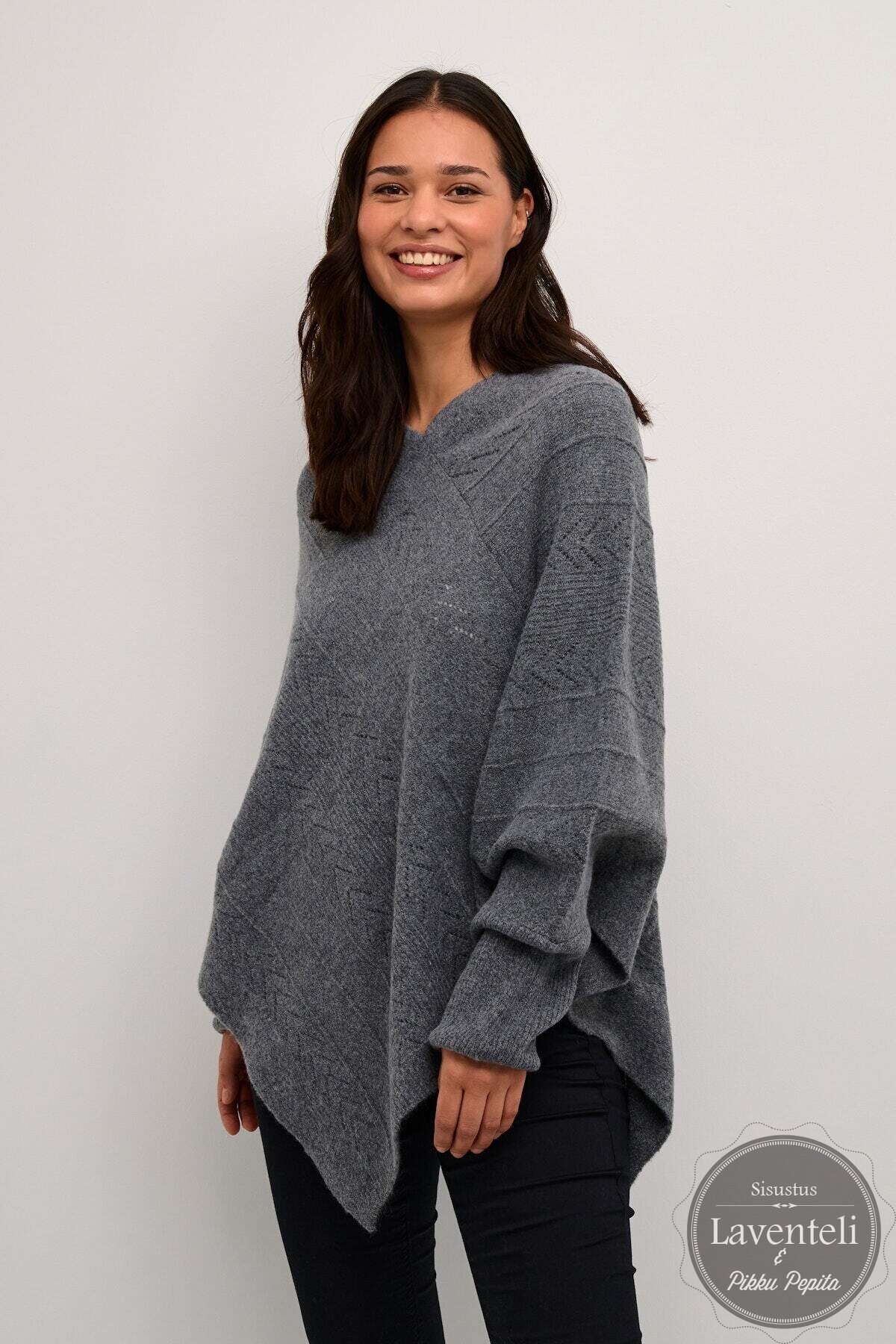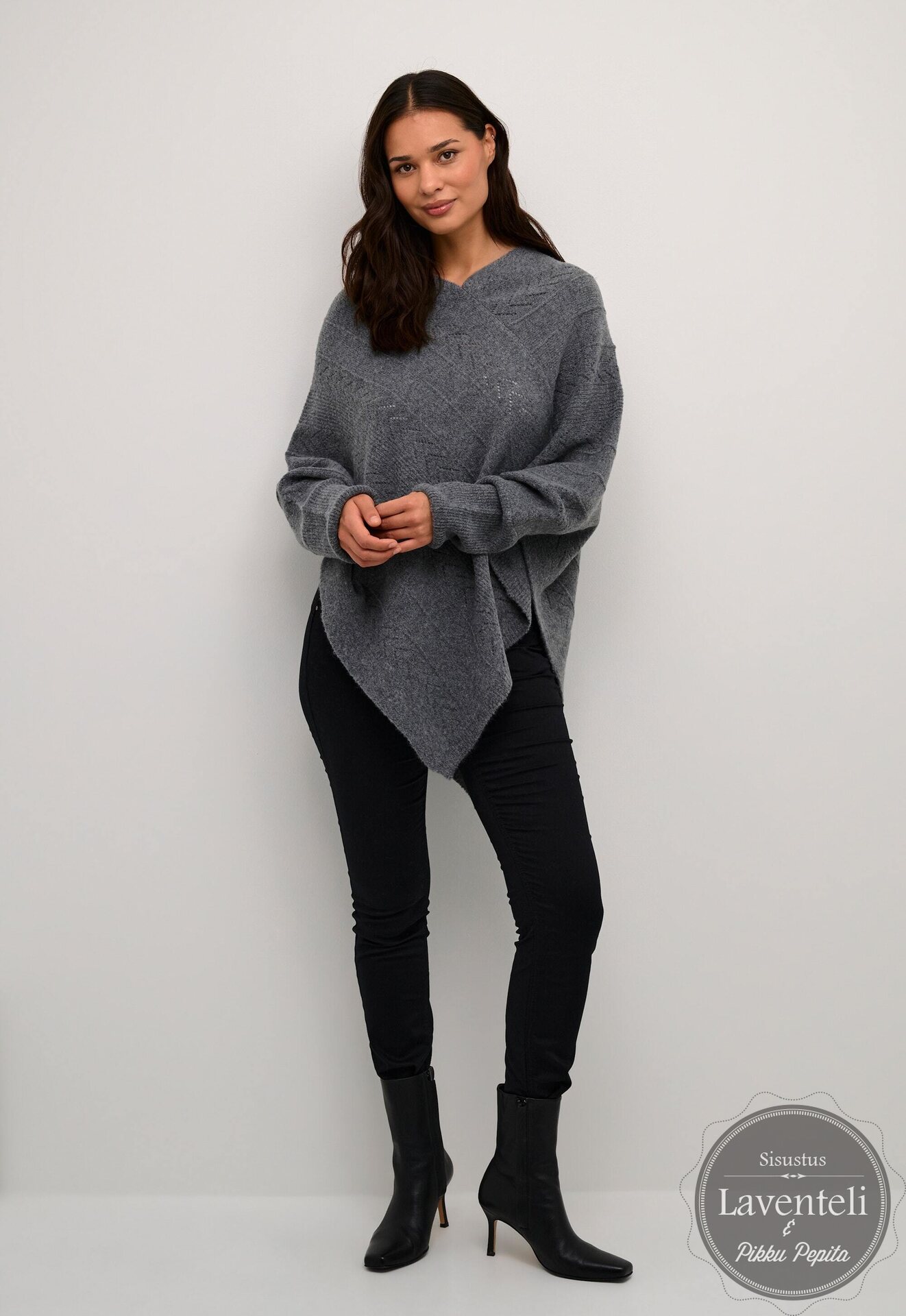 🤎 Creamin harmaa Holiday hihallinen poncho – pehmeää pörröisyyttä arkeen