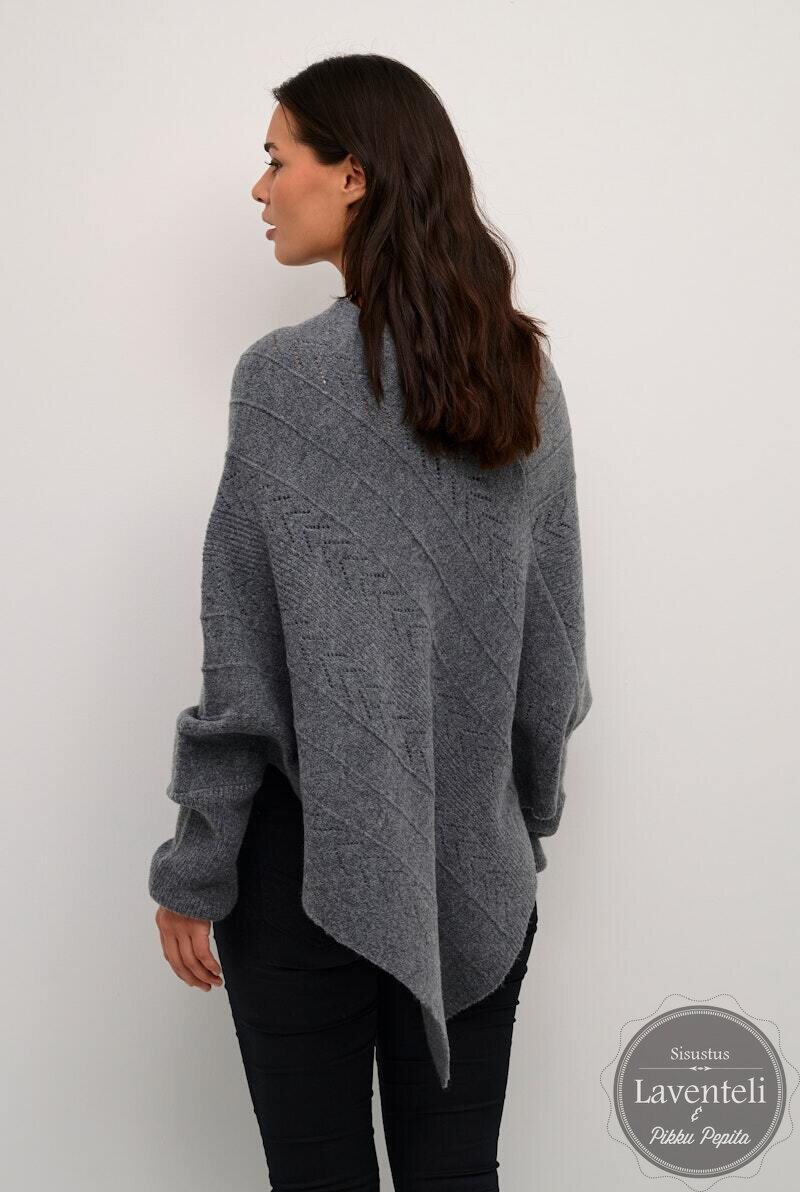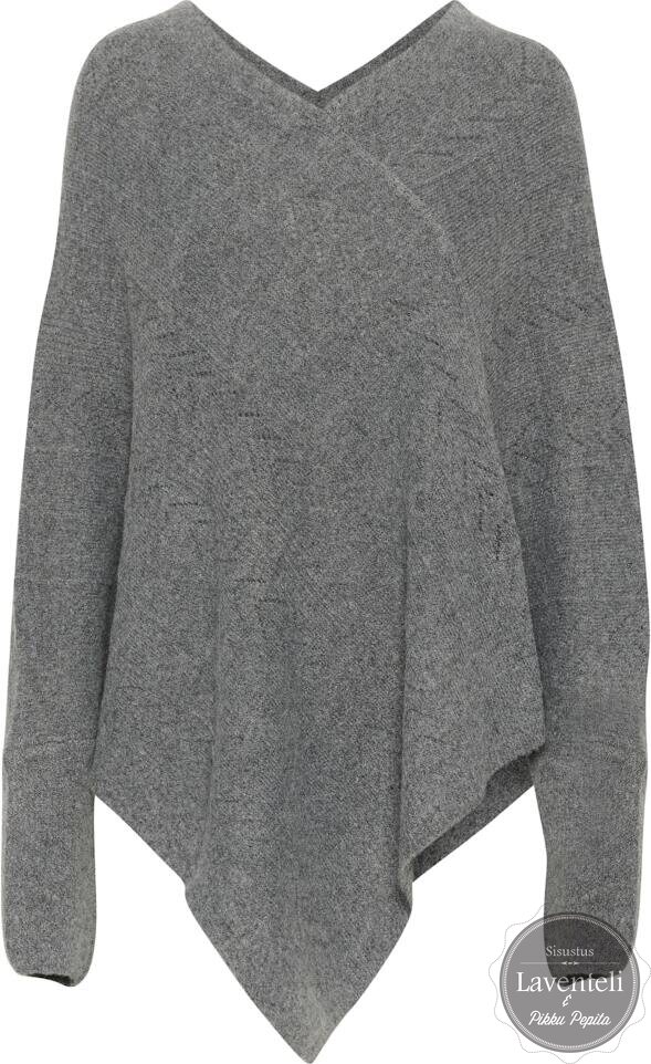 Tässä naisten poncho-neulepuserossa on rento istuvuus ja moderni epäsymmetrinen helma. Siinä on v-pääntie, pitkät hihat ja hienovaraisesti teksturoitu neulos, joka takaa erinomaisen mukavuuden ja monipuolisen tyylin.