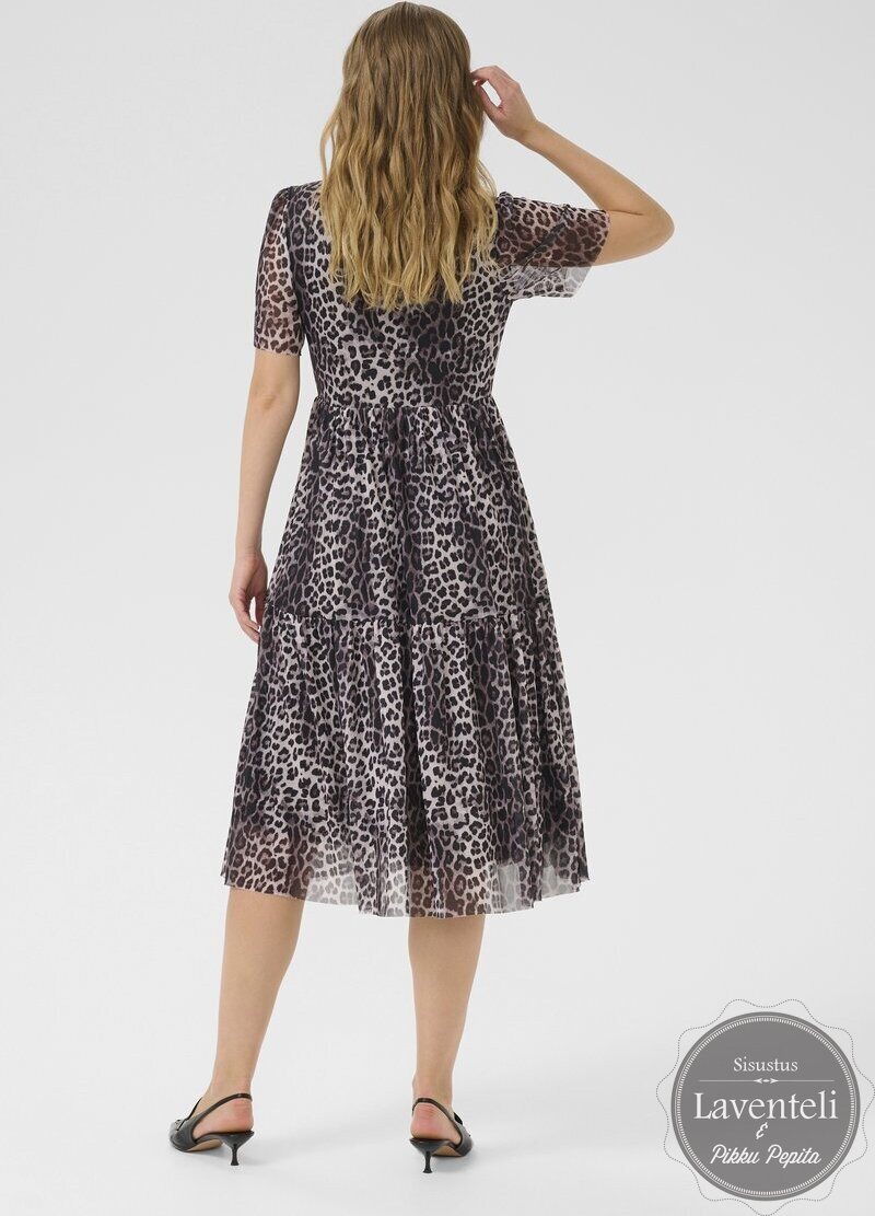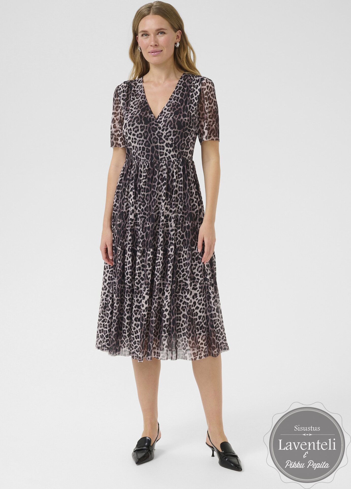 Näyttävä mutta elegantti leopardikuosinen mekko hurmaa ajattomalla kuosillaan ja imartelevalla leikkauksellaan.