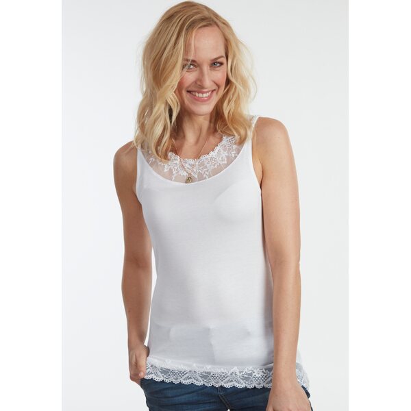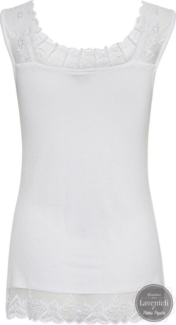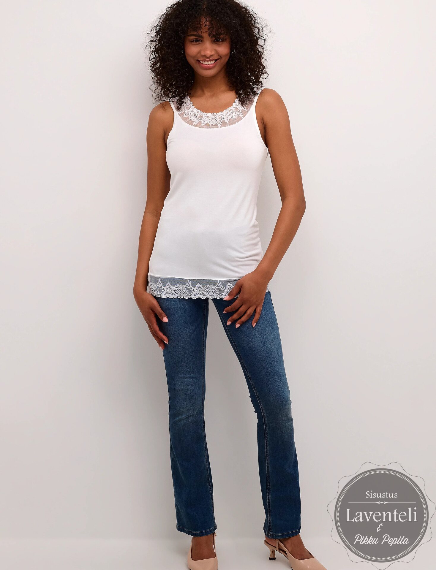 Pehmeä ja miellyttävä Cream pitsitoppi, johon ihastut heti! Kauniit pitsiyksityiskohdat olkaimissa, rinnassa ja helmassa tuovat asuun ripauksen eleganssia ja romantiikkaa.