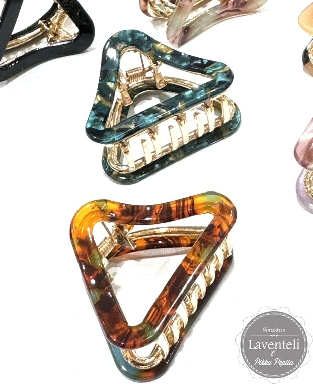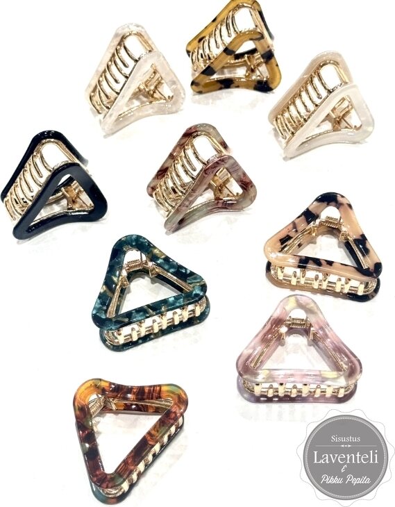 Pieni kolmionmuotoinen hiusklipsi. Hiusklipsi on kaunis yksinkertainen malli. Se lisää kampaukseesi jotain ekstraa ja sopii täydellisesti nopeaan ja hellään kampaukseen. Klipsi sopii myös juhlaviin kampauksiin. Koko 4 * 3,5 cm.