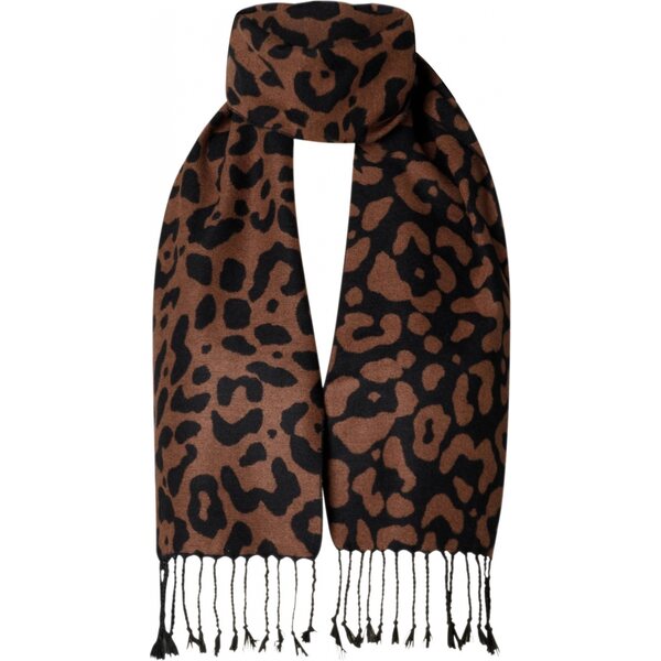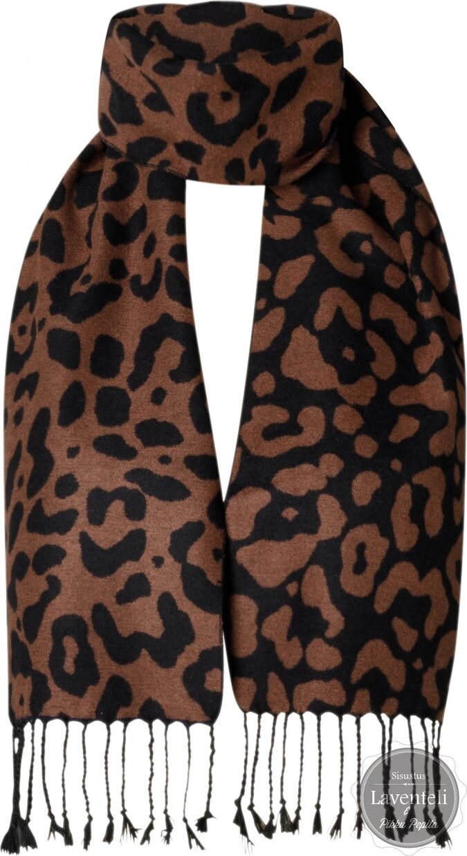 Tämä tyylikäs, eläinkuosilla kuvioitu huivi tuo asuusi ripauksen lämpöä ja persoonallisuutta. Lämmin taupe-pohjaväri ja musta kuvio muodostavat harmonisen, helposti yhdisteltävän kokonaisuuden.