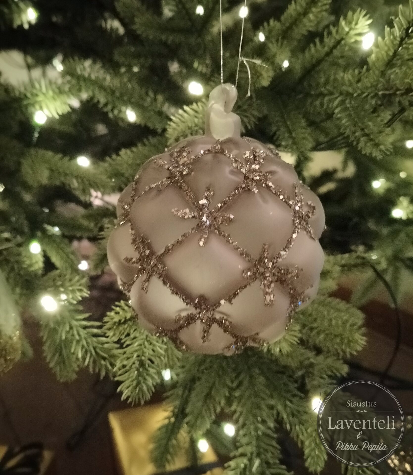 Περιγραφή προϊόντοςMattapintainen harmaa joulupallo, jossa salmiakkiruutukuvio ja hopeanväristä kimalletta. Voit ripustaa niin joulukuuseen kuin vaikka kranssiin roikkumaan.