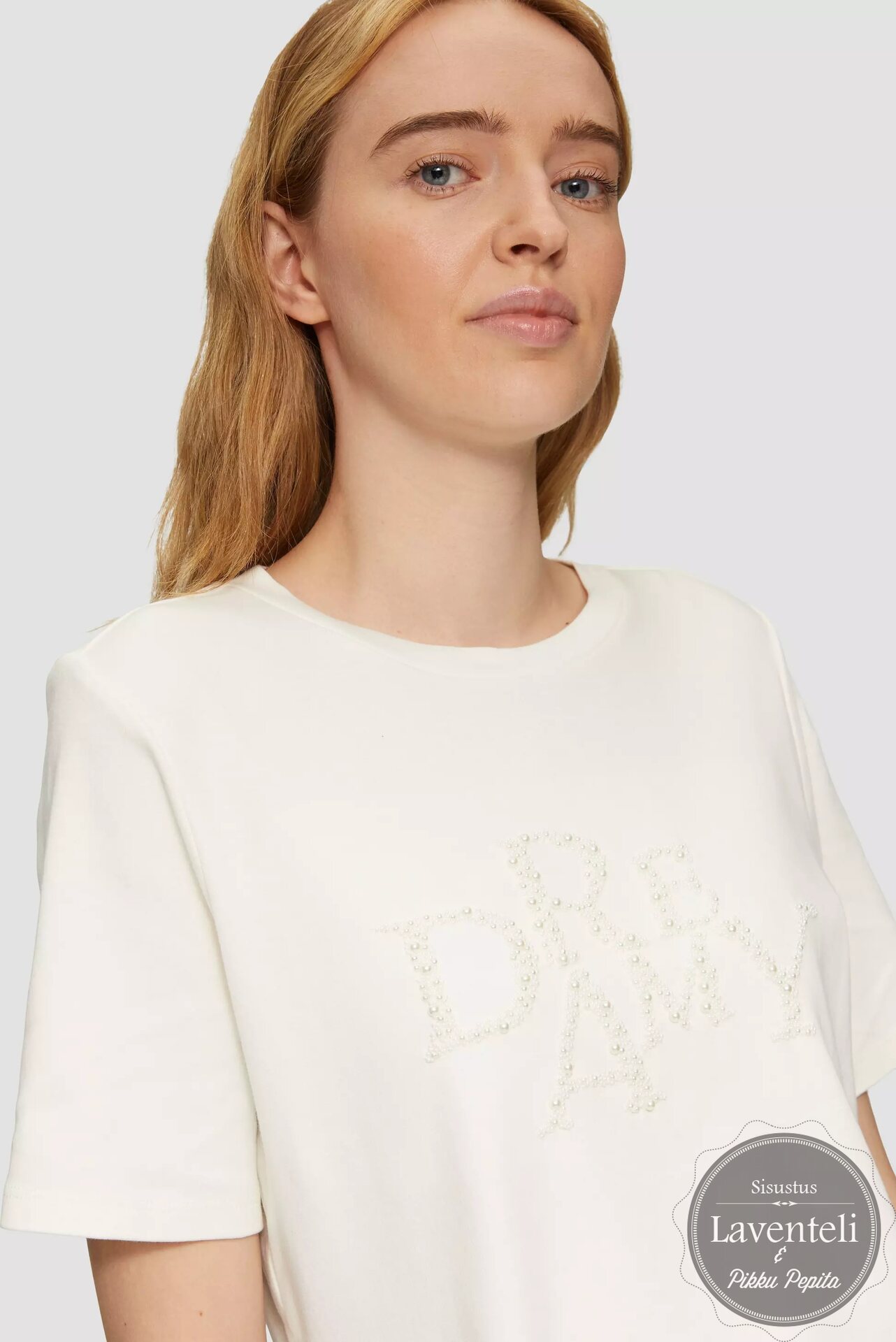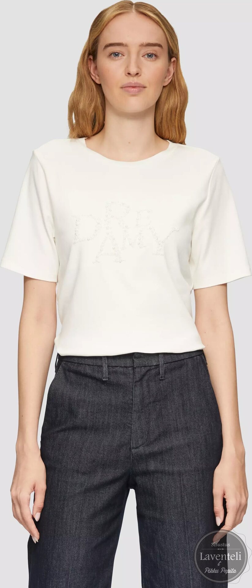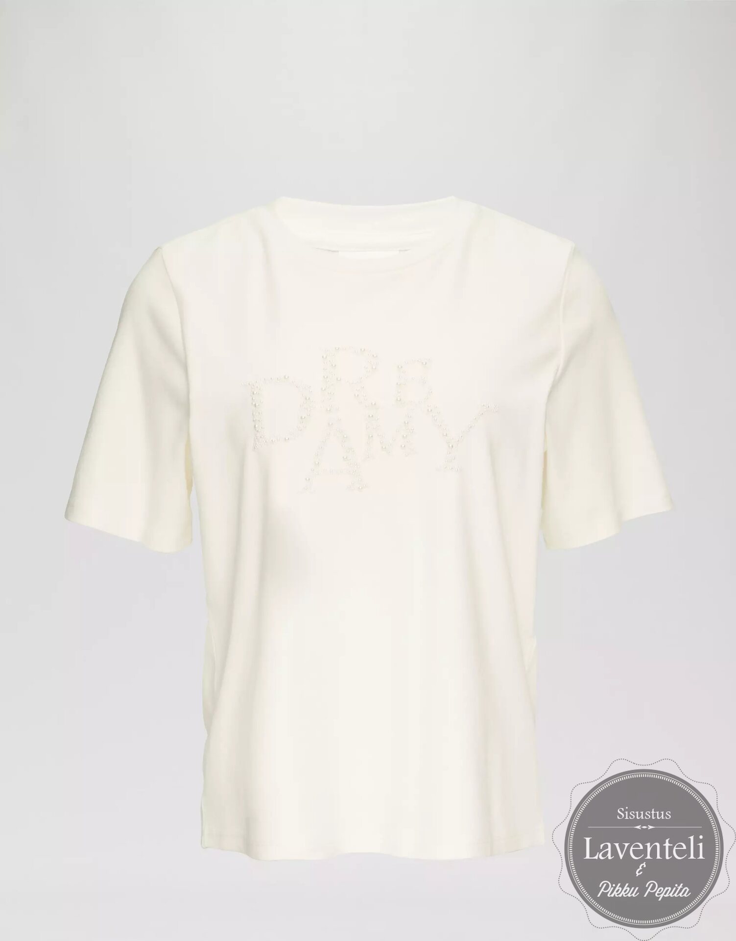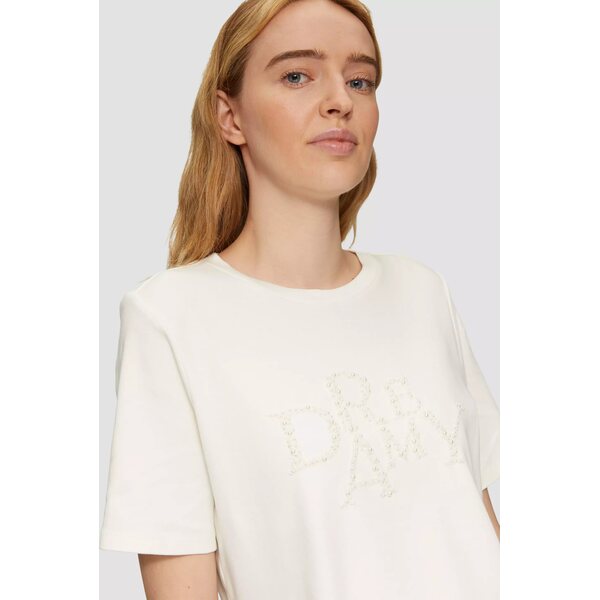 Pukeutumiseesi tyylikästä eleganssia S.Oliverin naisten Dreamy t-paidalla. Klassinen luonnonvalkoinen t-paita, jossa Dreamy-teksti kirjailtuna helmillä. Helmet tuovat asuun hienostunutta hohtoa ilman liiallista näyttävyyttä.