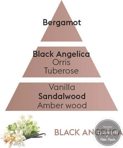 Kontrastien leikki luo epätavallisen tuoksun, joka on täynnä salaperäistä kukkakauneutta. Raikas, vihreä ja pehmeä Black Angelica -kotituoksu tuo kotiisi upeaa vihvahteisuutta.