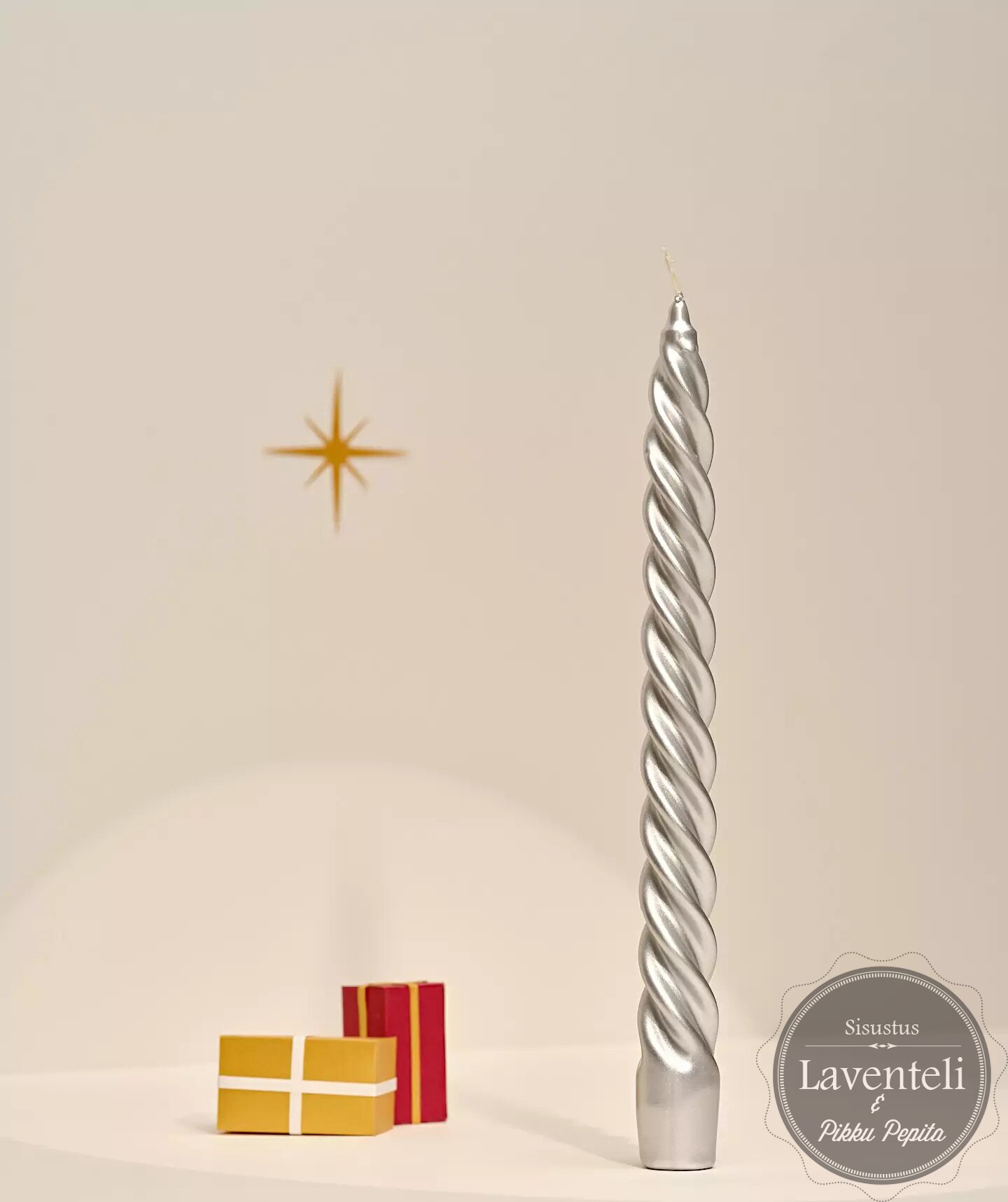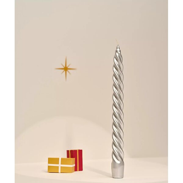 Klassinen kruunukynttilä, jossa hieno kierre. Pinnassa on hieno helmiäisen kiilto.