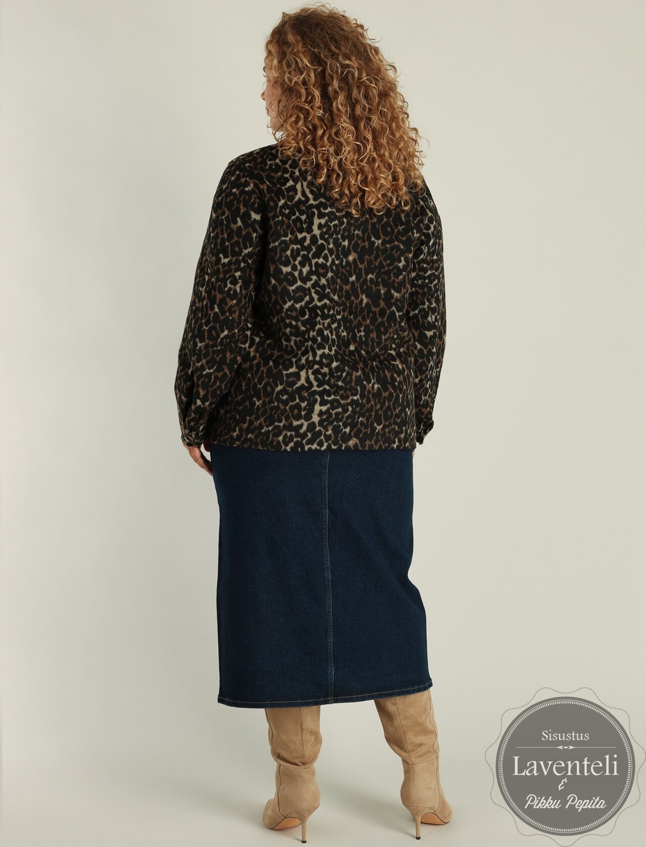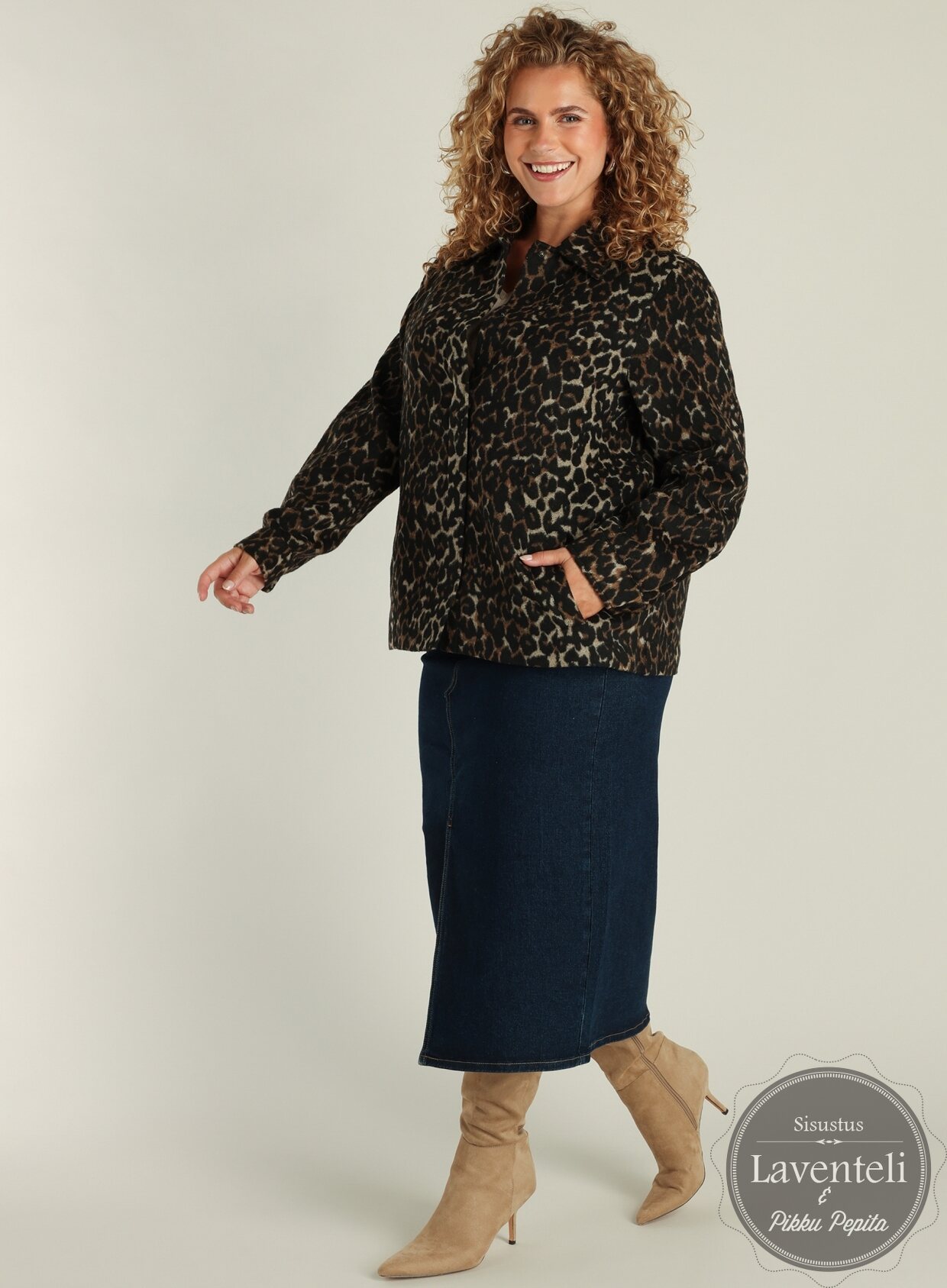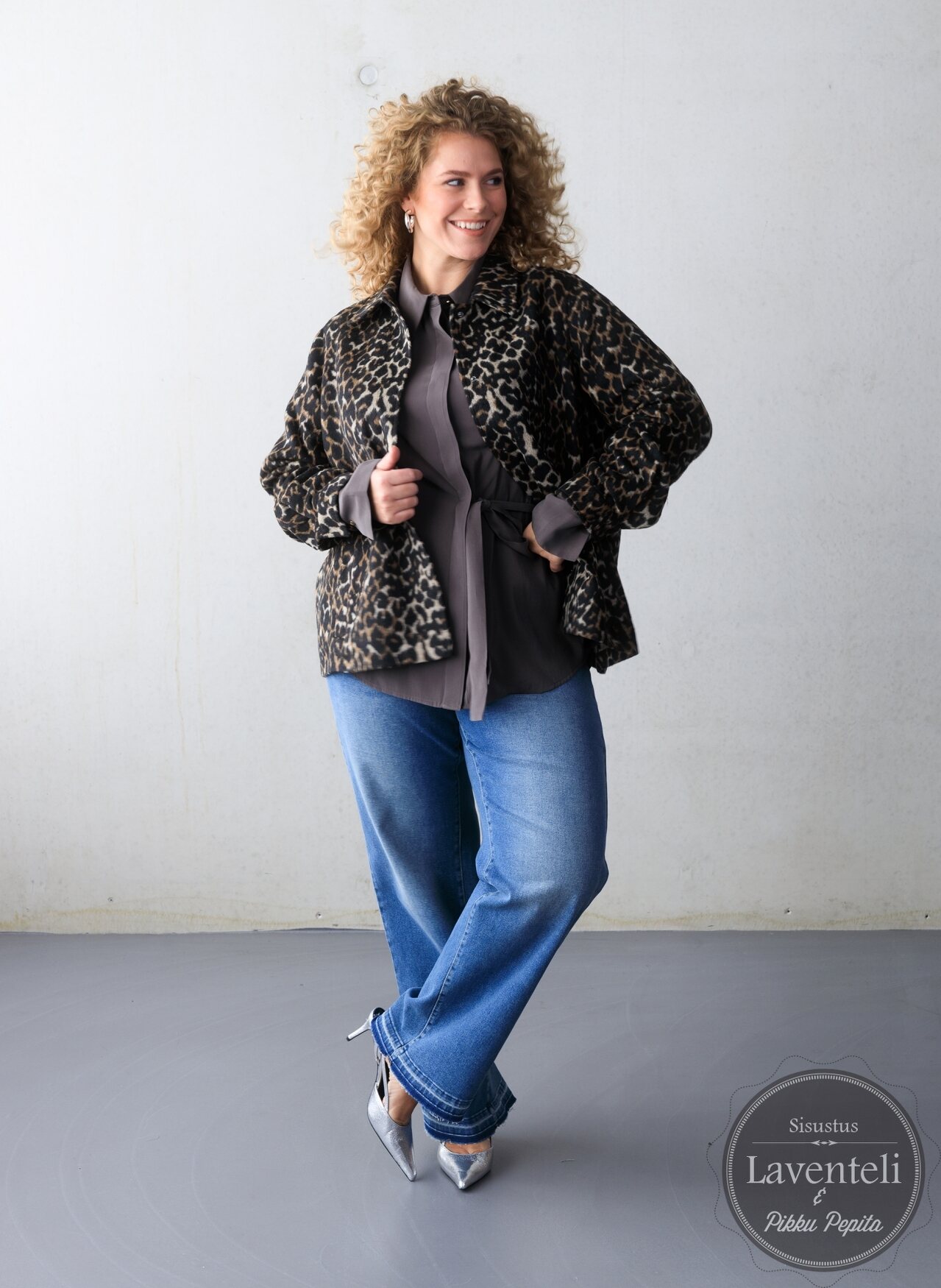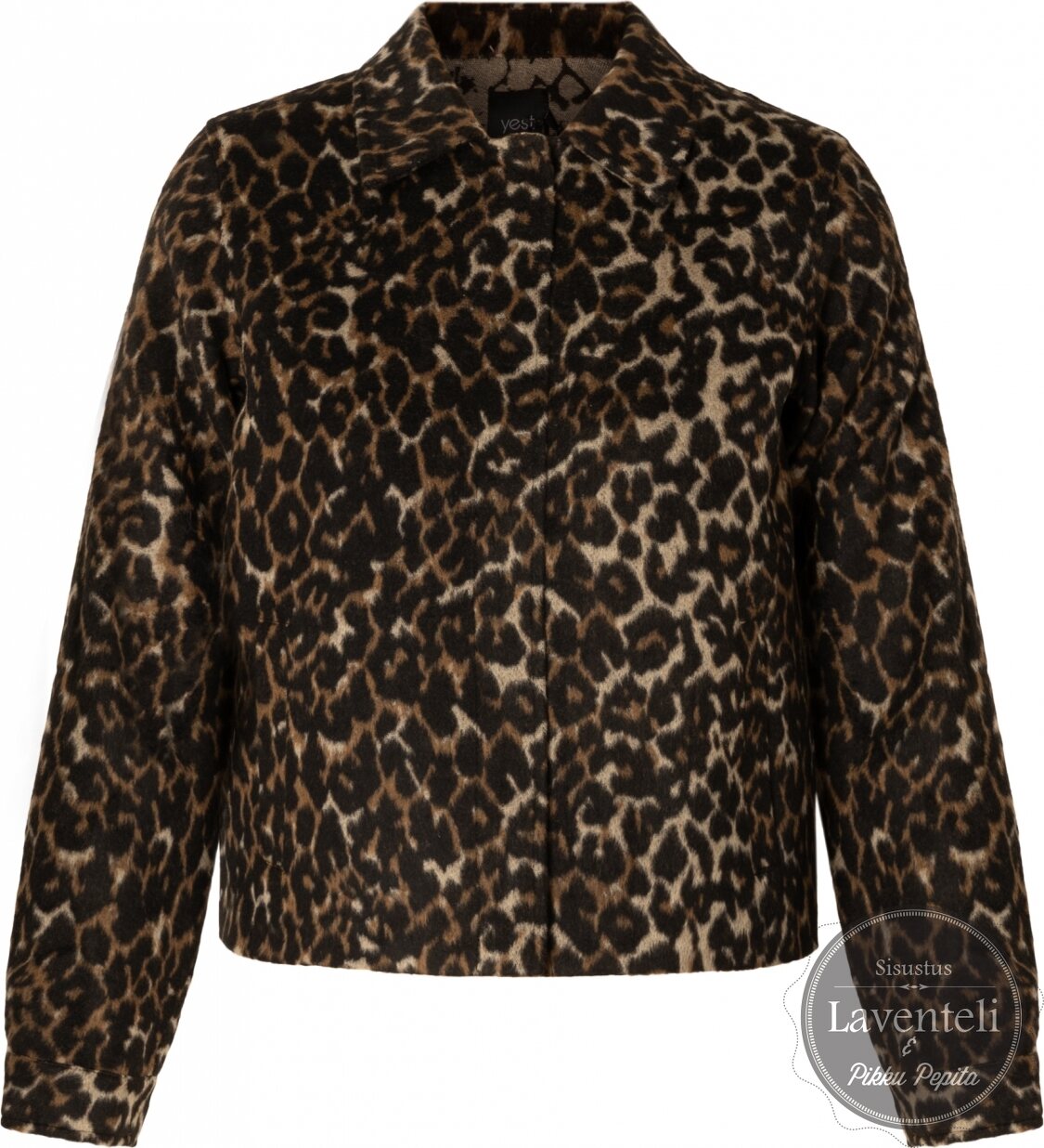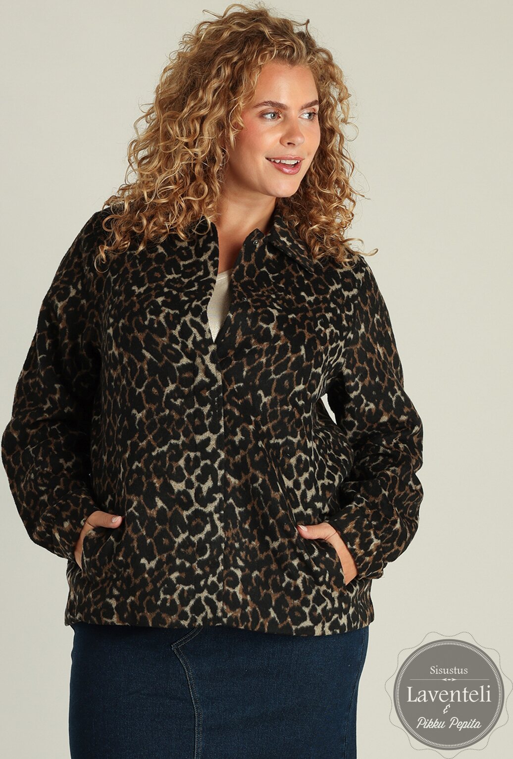 Tämä pehmeästä eläinkuvioisesta kankaasta valmistettu takki on monipuolinen lisä vaatekaappiisi. Lyhyt malli kiinnitetään painonapeilla, siinä on kaulus ja kätevät taskut.