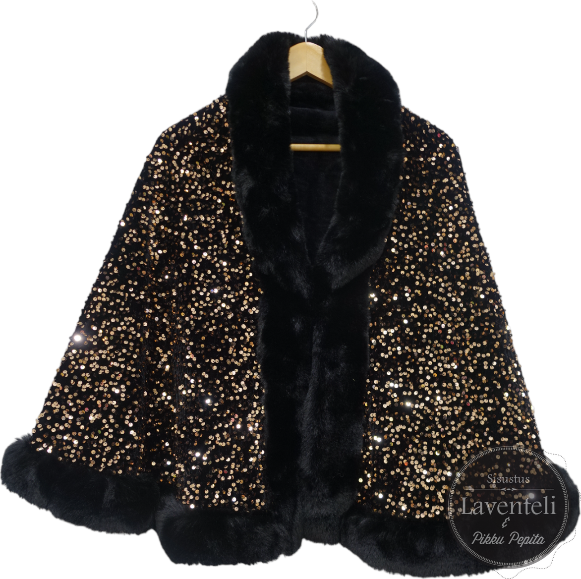 Ihanat kimaltavat kullanväriset tai valkoiset paljetit.