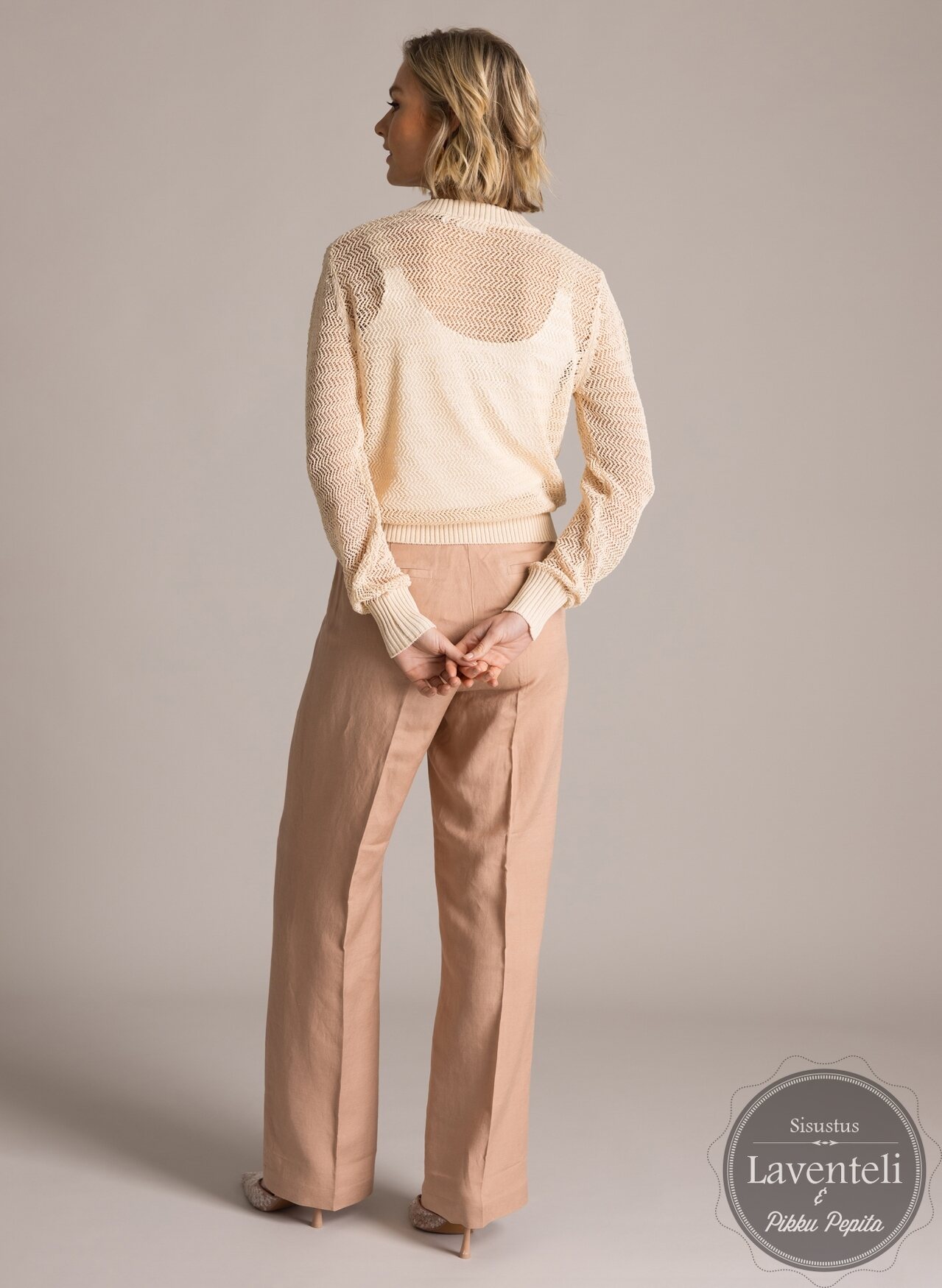 Yksityiskohdat: openwork-neulos, ribbineulotut hihansuut