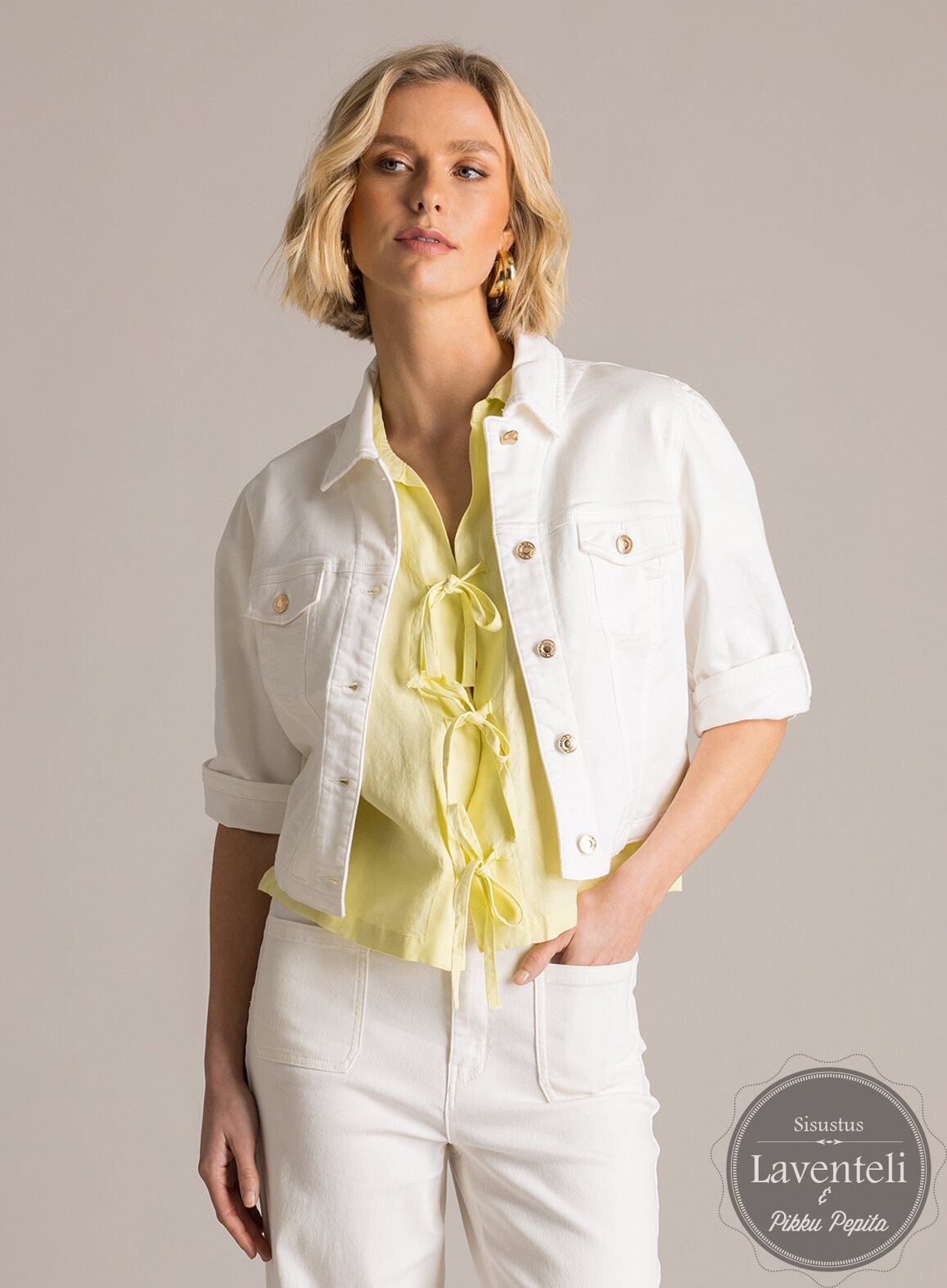 Tämä jakku on kesävaatekaapin luottotuote – helppo, tyylikäs ja aina ajankohtainen valinta, joka viimeistelee asusi vaivattomasti.