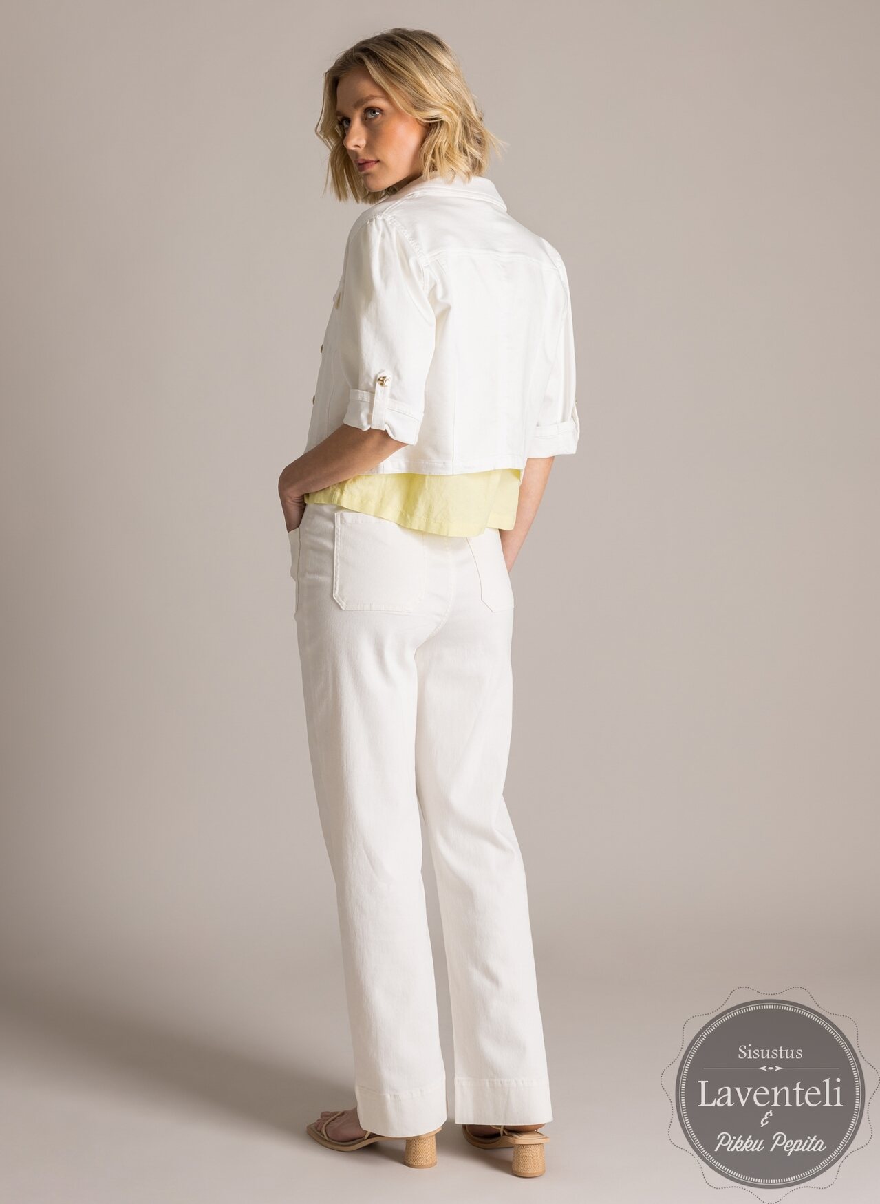 Yest Luonnonvalkoinen lyhyt farkkujakku