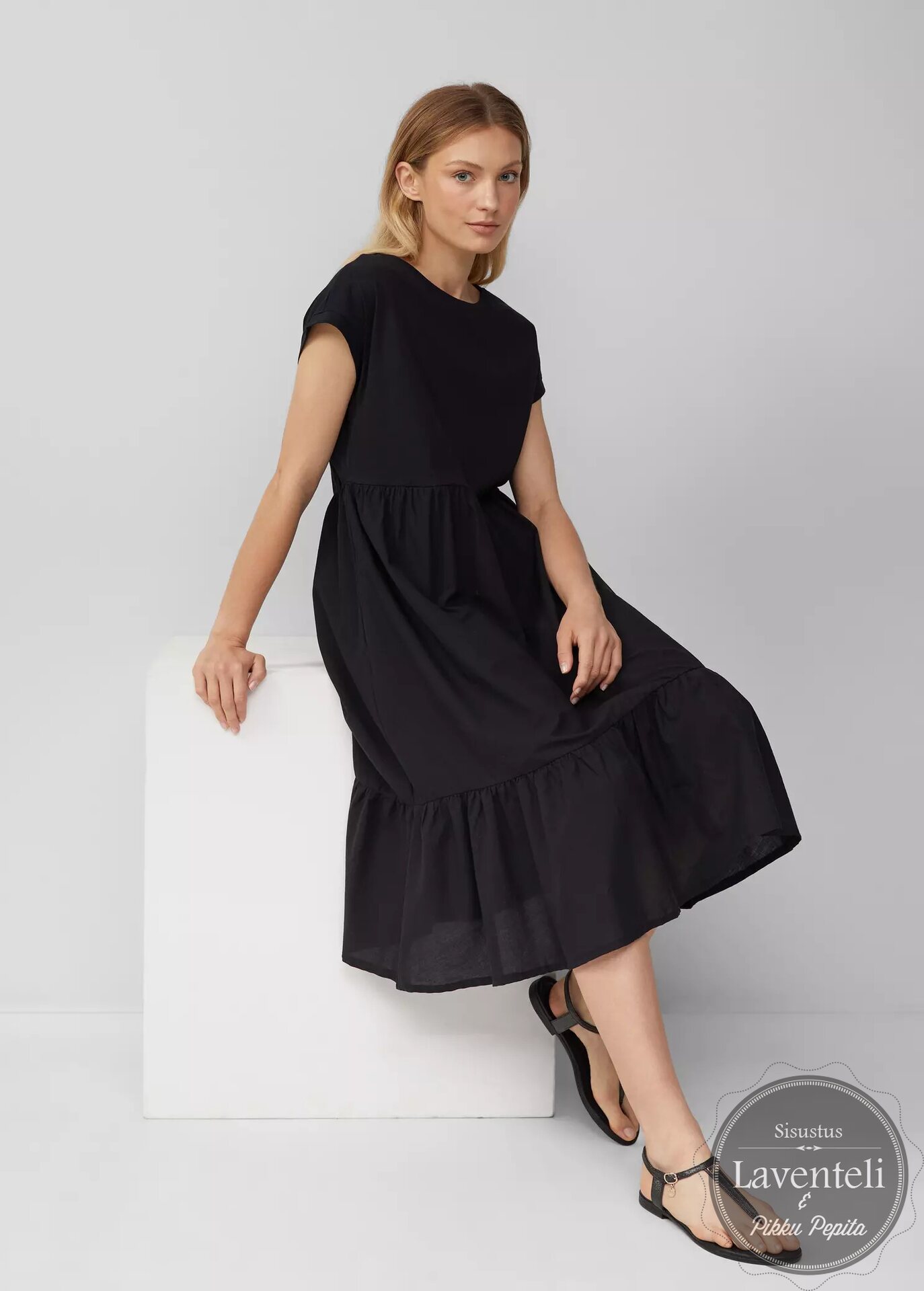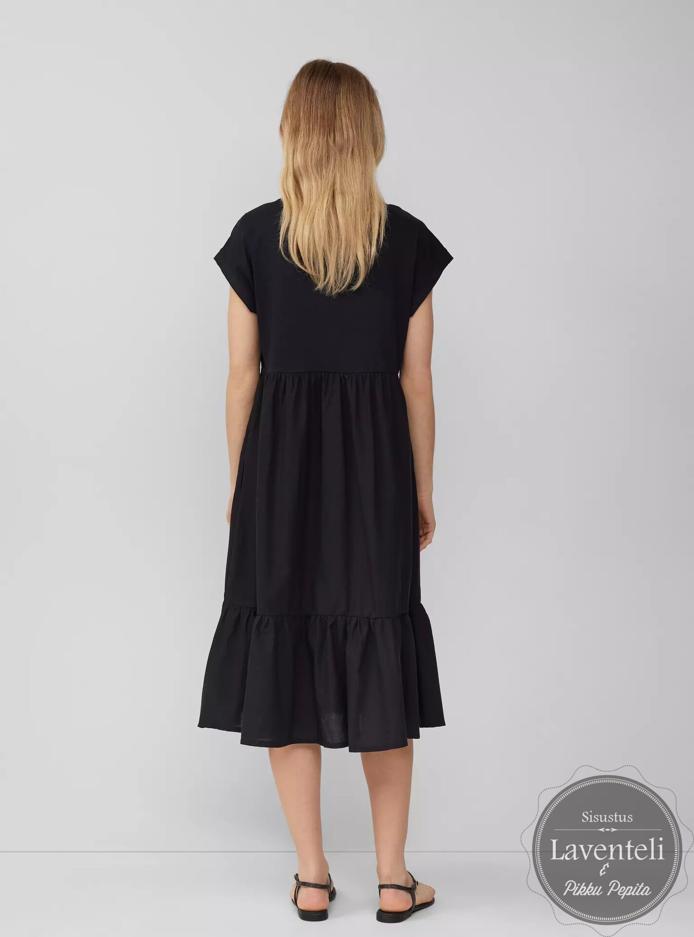 S. Oliver Musta midipituinen hihaton puuvillamekko