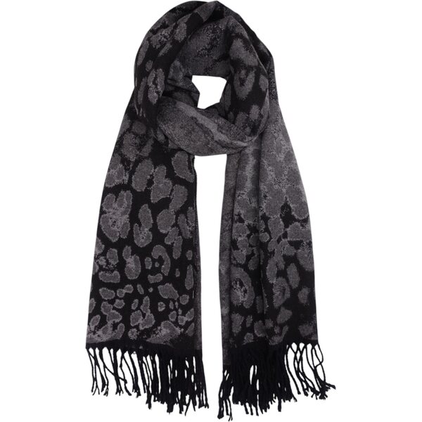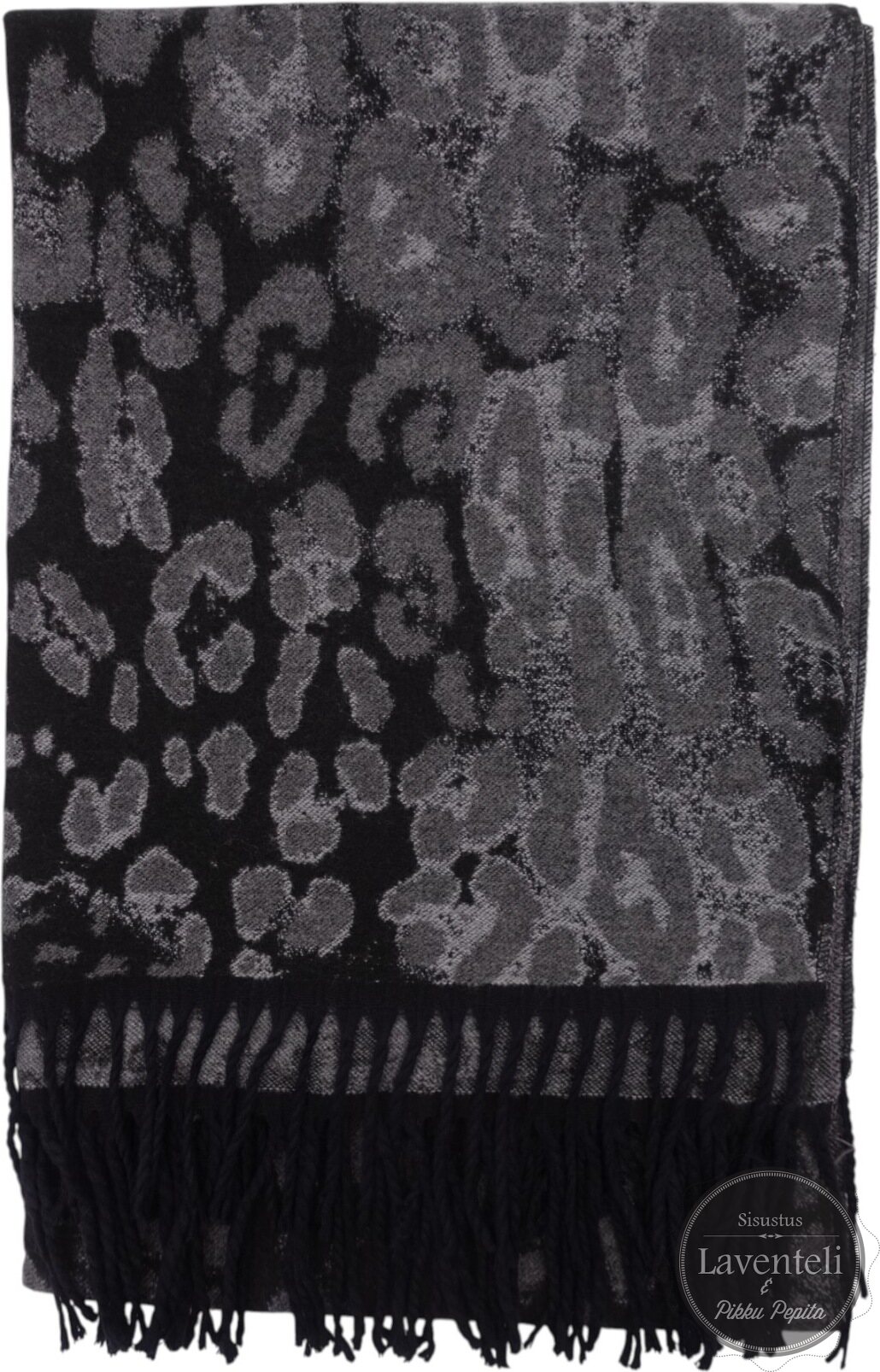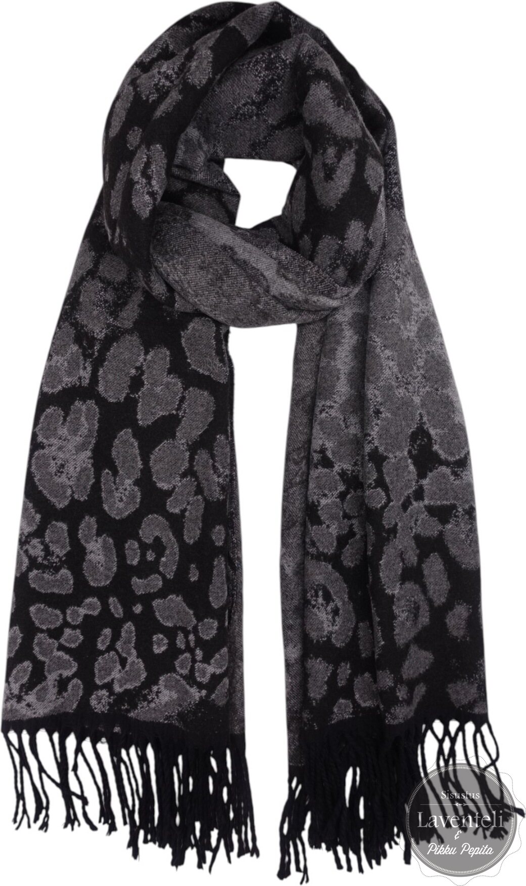 Tämä tyylikäs, eläinkuosilla kuvioitu huivi tuo asuusi ripauksen lämpöä ja persoonallisuutta. Tumma pohjaväri ja harmaa kuvio muodostavat harmonisen, helposti yhdisteltävän kokonaisuuden. Yhdistä kirkkaisiin väreihin, jolloin saat aikaan kivan kontrastin.