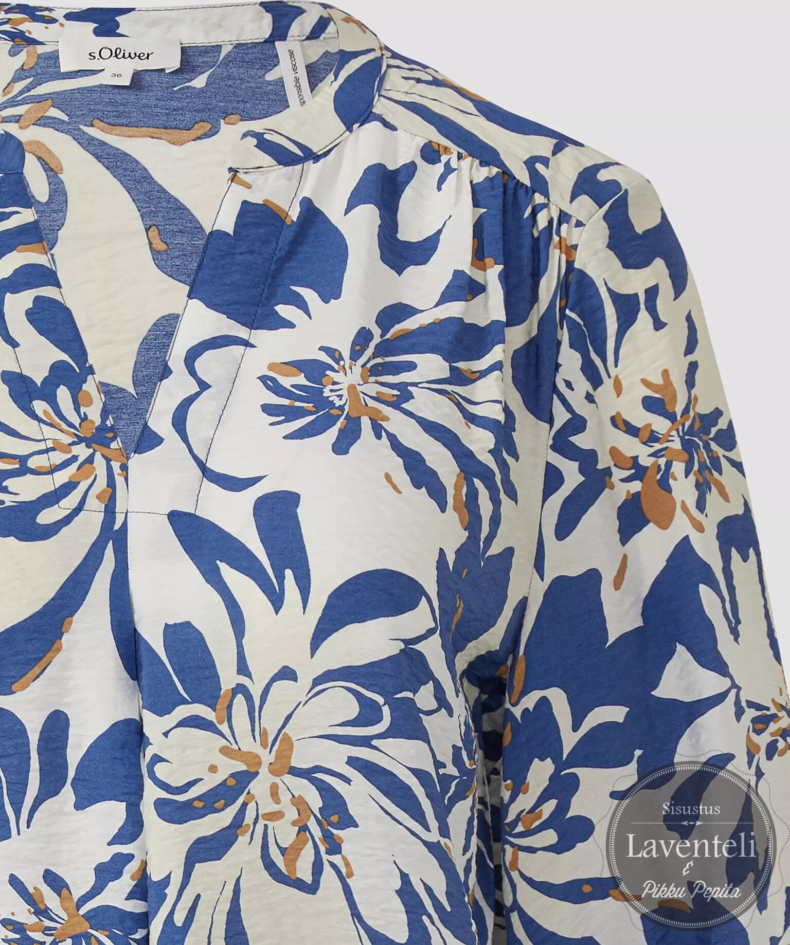 🌸 s.Oliver sinivalkoinen kukkakuosinen viskoosipaita – kevyt ja rento