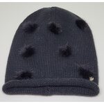Tyylikäs ja melko yksinkertainen pipo, jossa pieniä karvapampuloita koristeena kauttaaltaan.