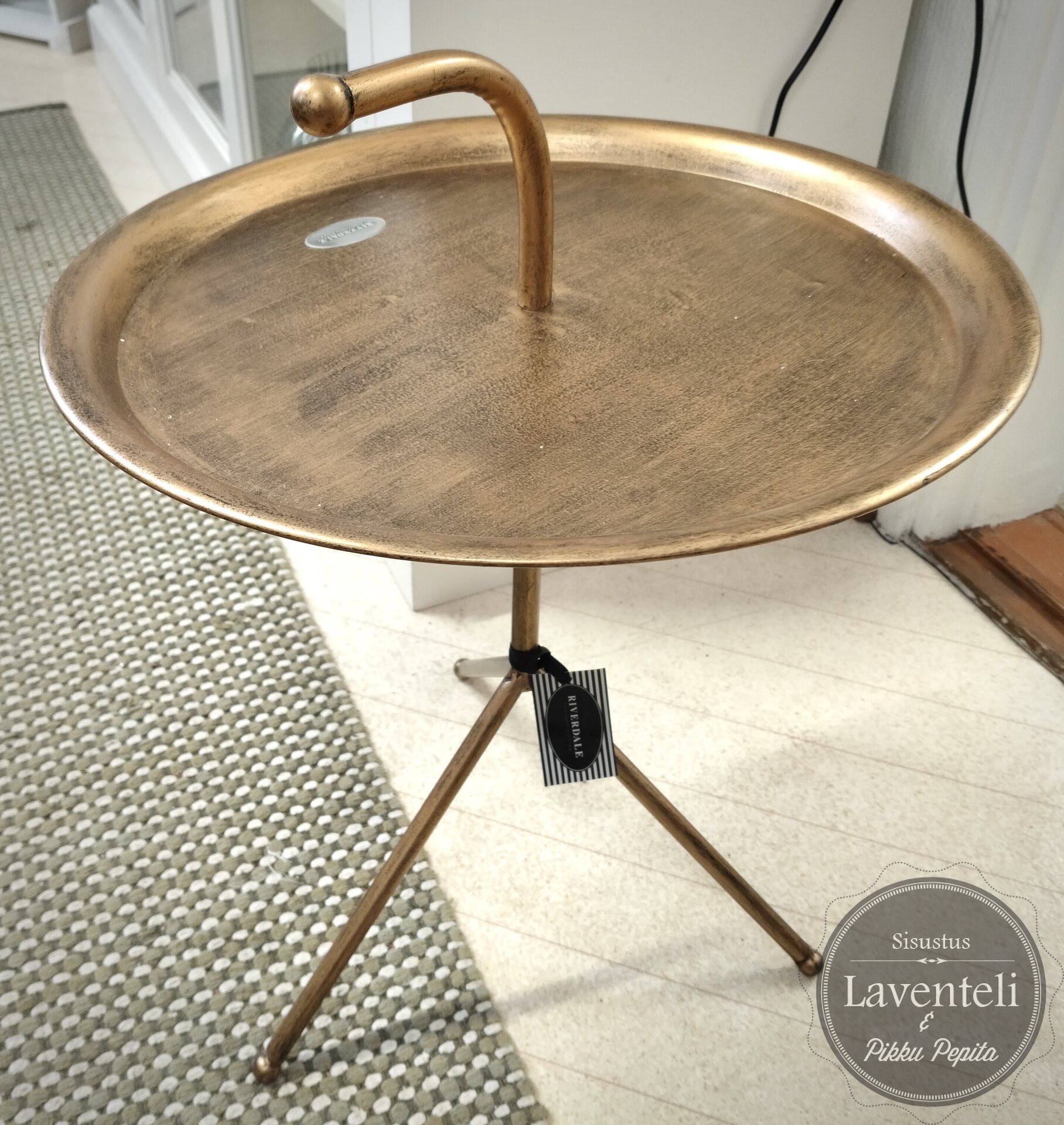 Riverdalen pieni pöytä muistuttaa Don't Leave Me pöytää. Nimi tulee siitä, että kantokahvan ansiosta voit ottaa kevyen pikkupöydän helposti tuolin tai sohvan viereen mukaasi. Jopa toiseen huoneeseen. Sirokokoinen pöytä on kuin tarjotin, jota on helppo siirrellä paikasta toiseen. Se on hyvä vaihtoehto perinteisille kahvipöydille. Laske viinilasi tai kahvikuppi kädestäsi missä tahansa. Sopii loistavasti moderniin sisustukseen sekä vähän perinteisempään kalustukseen.