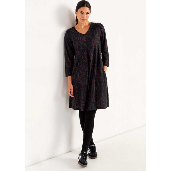 Laskos edessä antaa mekolle viimeistellyn ilmeen, ja 3/4-hihat tekevät siitä täydellisen monenlaisiin vuodenaikoihin. V pääntie ja käytännölliset sivutaskut tuovat rentoa, mutta huoliteltua tyyliä.