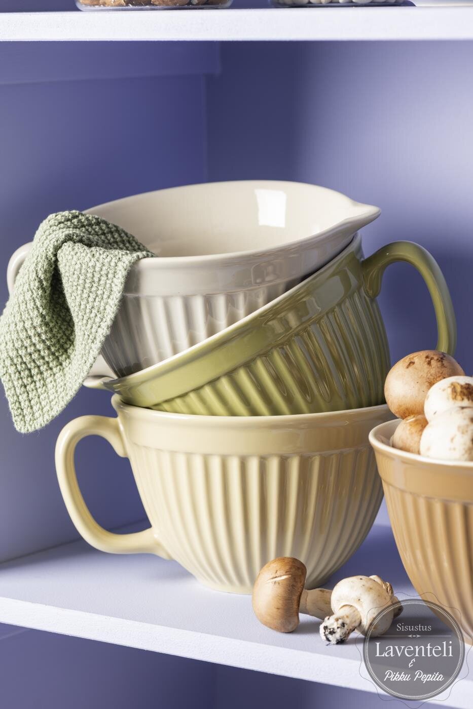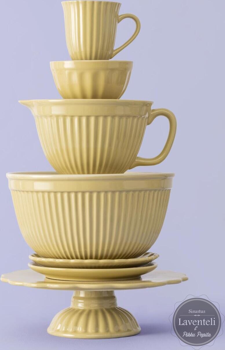 Kulho sopii erinomaisesti taikinoiden sekoittamiseen, mutta on yhtä lailla kaunis pöydällä munien, hedelmien tai muiden keittiötarvikkeiden säilytykseen. Ajaton vaalea oljenkeltainen sävy istuu harmonisesti suomalaiseen keittiöön ja tuo tilaan rauhallista ilmettä.