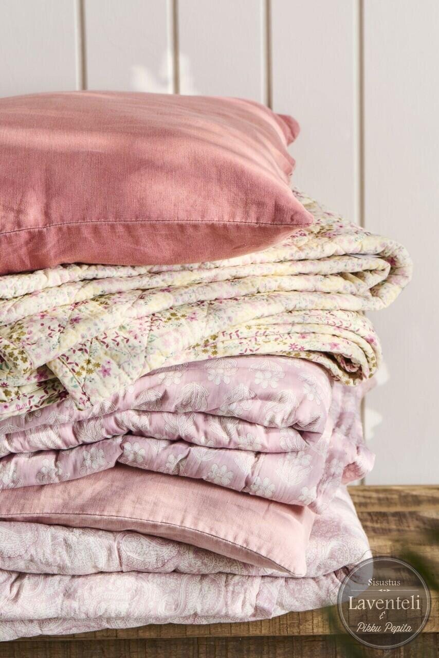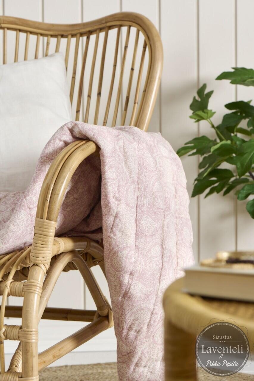Tuo kotiisi pehmeää eleganssia tällä upealla Ib Laursen quilt torkkupeitolla. Tämä kauniisti tikattu peitto hurmaa harmonisella roosa–malva värimaailmallaan ja ajattomalla valkoisella paisley-kuviolla, joka tuo sisustukseen ripauksen klassista boheemia tunnelmaa.