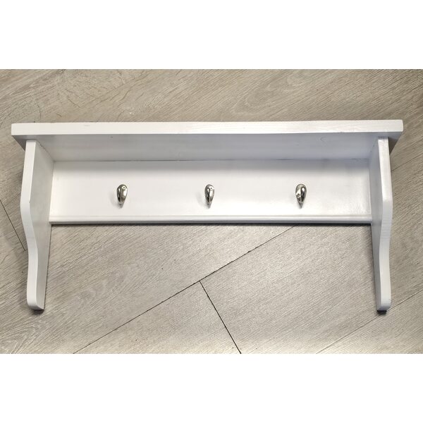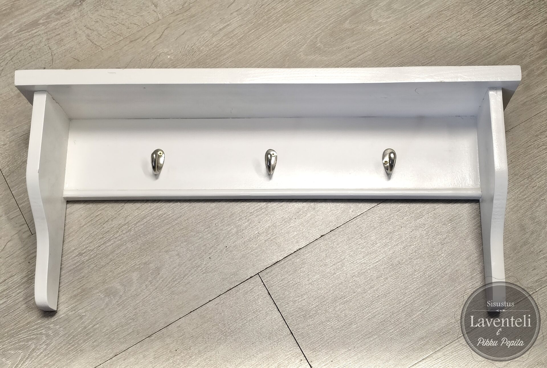 Kestävä puinen naulakko, jossa on kromiset koukut.