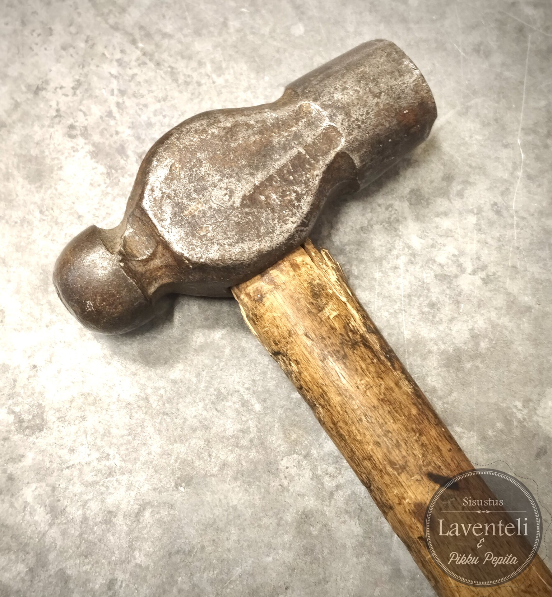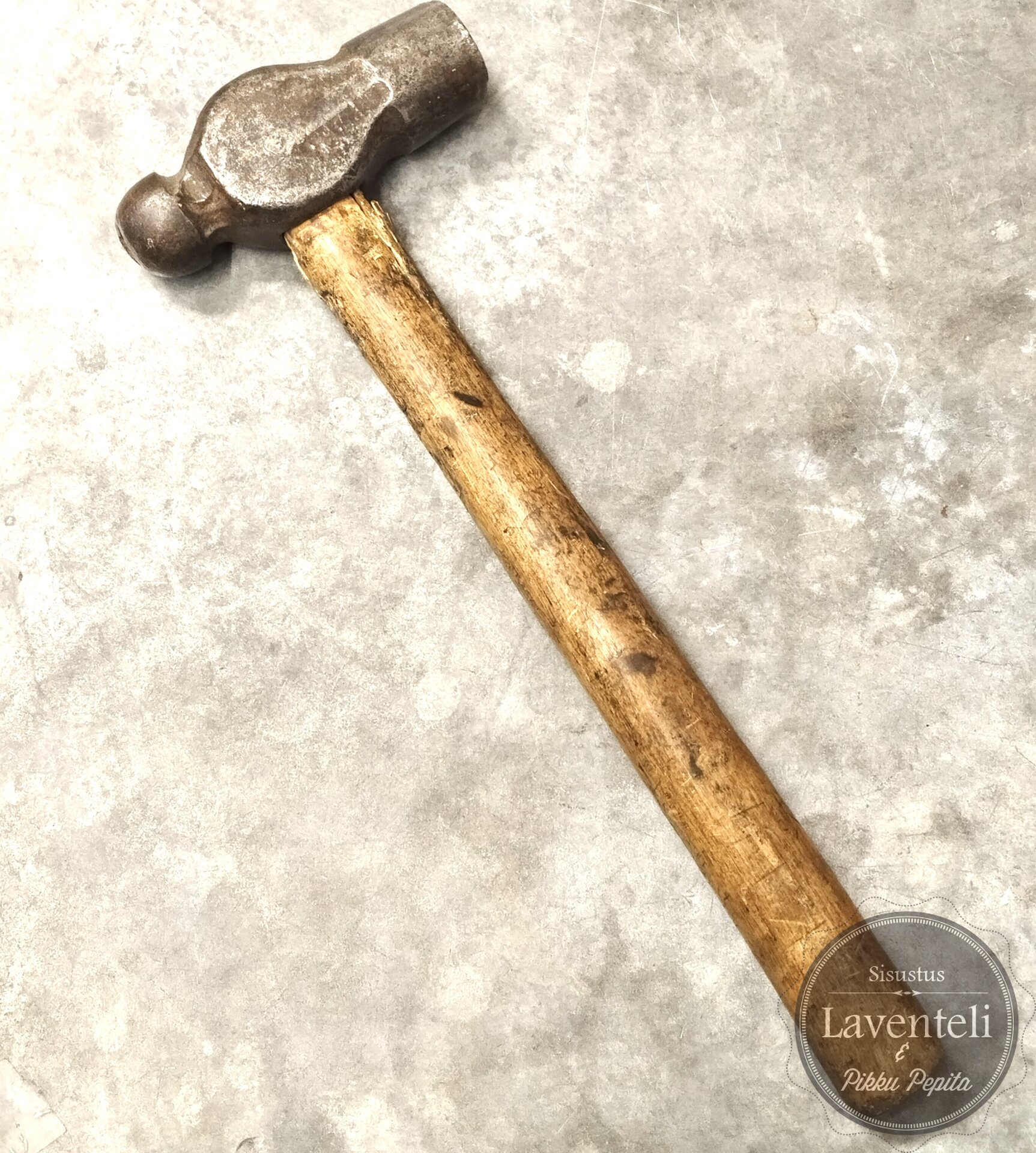Erittäin vanha ja hyväkuntoinen vasara koristeeksi. Korkeus 24,5 cm, kahvan leveys 2 cm. Materiaali puu, rauta.