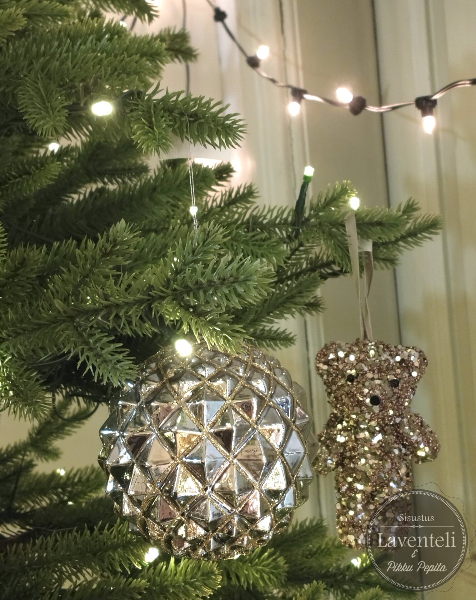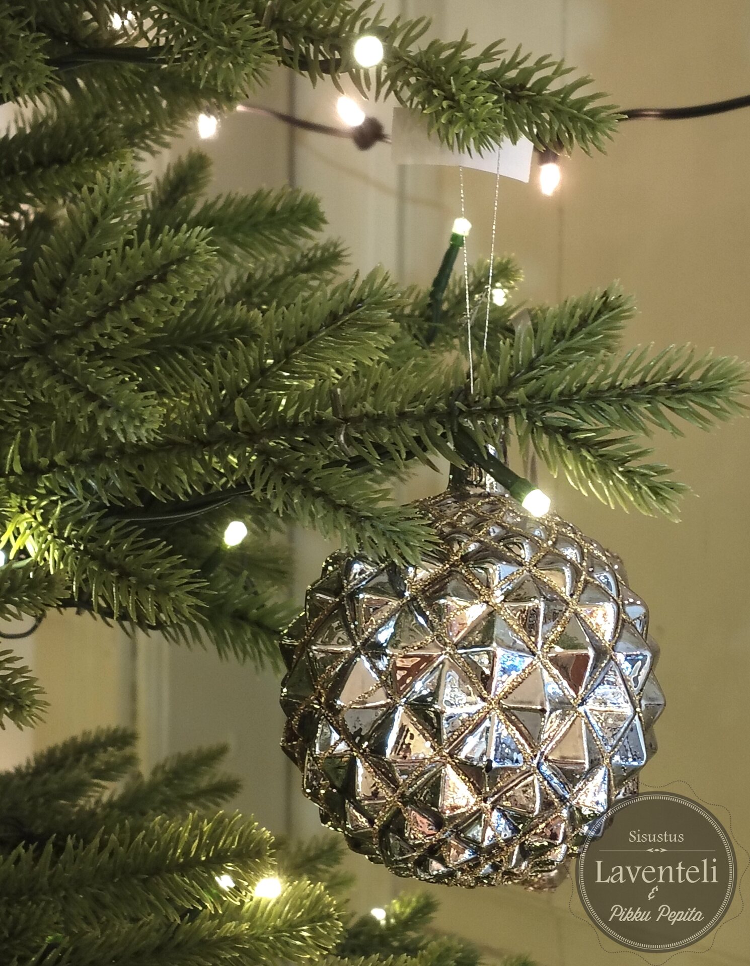 商品描述Vaalea sampanjanvärinen lasipallo, josta ei oikein osaa sanoa onko pallo hopea vai kulta. Pienillä kullanvärisillä helmillä tehdyt salmiakkikuvioiset ruudut.