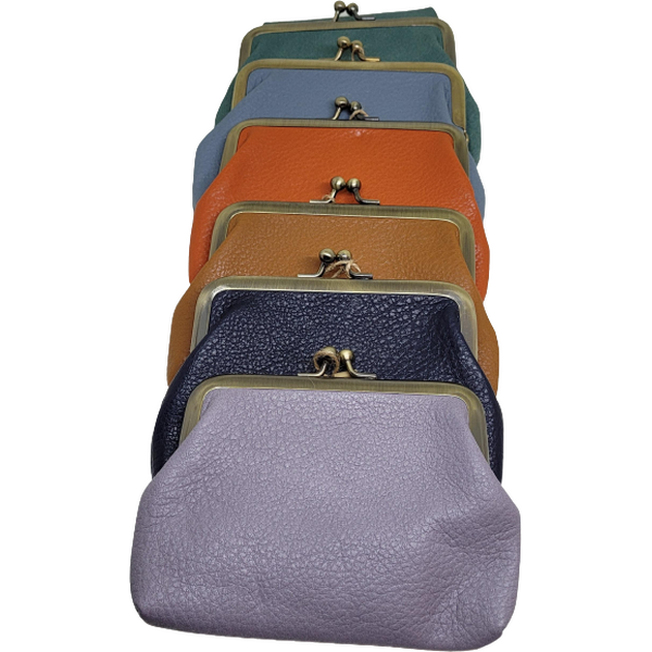 Nahkainen pieni kukkaro joka kiinnitetään kehyksestä napsauttamalla. Kukkarosta löytyy ihana värilajitelma, osta itsellesi ja lahjaksi.